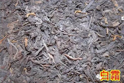 3、“白霜”它是茶叶后发酵的遗留物,没有菌丝,没有附着力,一吹即落;“酶变”有菌丝,附着力很强。