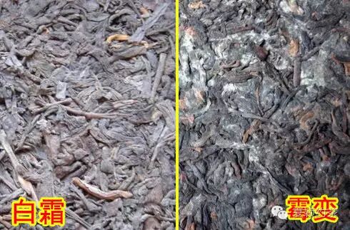 1、“白霜”长在茶饼表面;“霉变”可长在饼内和饼面上。