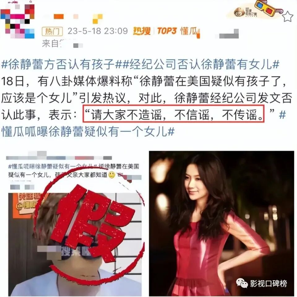 更离谱的是,在5月份娱乐狗仔“懂瓜呱”爆出徐静蕾在美国产下一个女儿。消息一出后,网上一片哗然。很快,徐静蕾工作室发文澄清:请大家不要造谣,不信谣、不传谣。