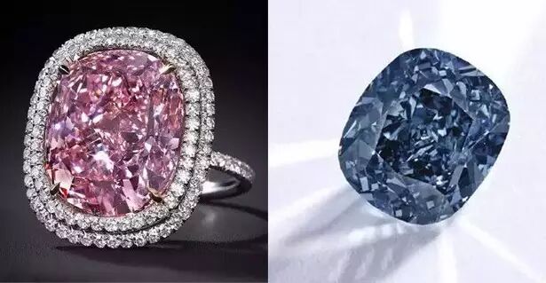 ▲图左的粉钻16克拉,价值1.8亿,右图蓝钻12克拉,价值3亿,都是送给甘比女儿的礼物