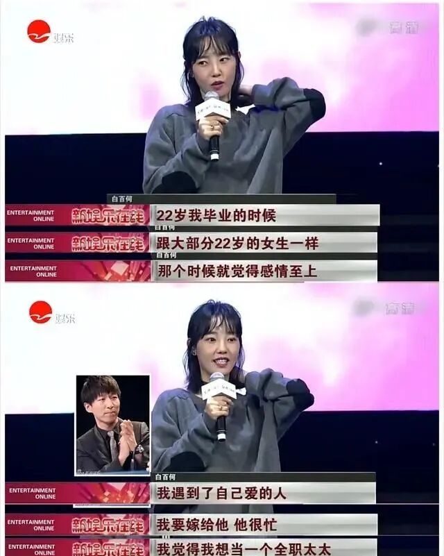 白百何后来表示,22岁刚毕业的时候,觉得感情至上,遇见爱的人,就想不顾一切,嫁给对方。