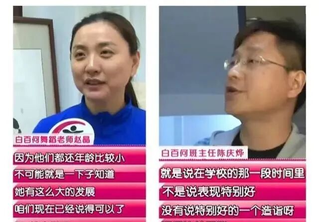 白百何的舞蹈老师,支支吾吾说了一句:“白百何那时候年龄还小,不可能一下子就知道”。