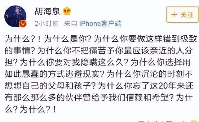 面对陈羽凡的XD事件,胡海泉一幅很铁不成钢的样子,连发几个为什么?