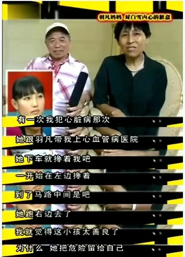 有一次陈羽凡的妈妈犯心脏病,要住院治疗,在过马路的时候,白百何从左边跑到右边。