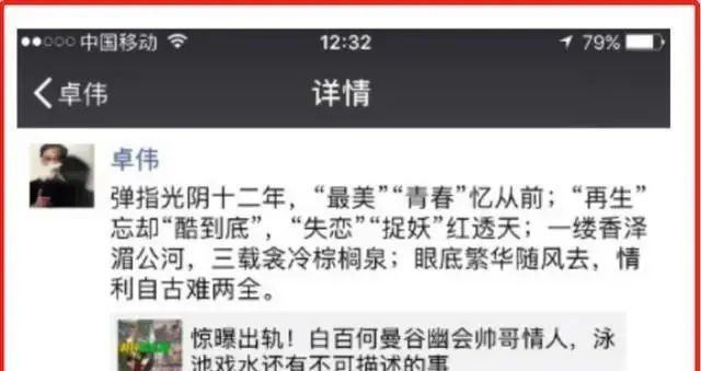 前一秒还在秀恩爱,后一秒卓伟就曝出了白百何婚内出轨,和小鲜肉在泳池亲密互动,“一阳指”照片曝光。