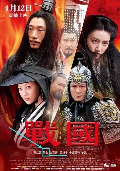 2011年上映的电影《战国》更是开启了景甜演艺事业的首次高峰。电影海报中景甜的名字依旧很显眼,甚至放在了金喜善、吴镇宇之前,厉害了Word甜!(要知道电影海报名字的排位是一个演员地位的象征啊,当年的画皮,赵薇、周迅的排位还引起了一阵骚动)
