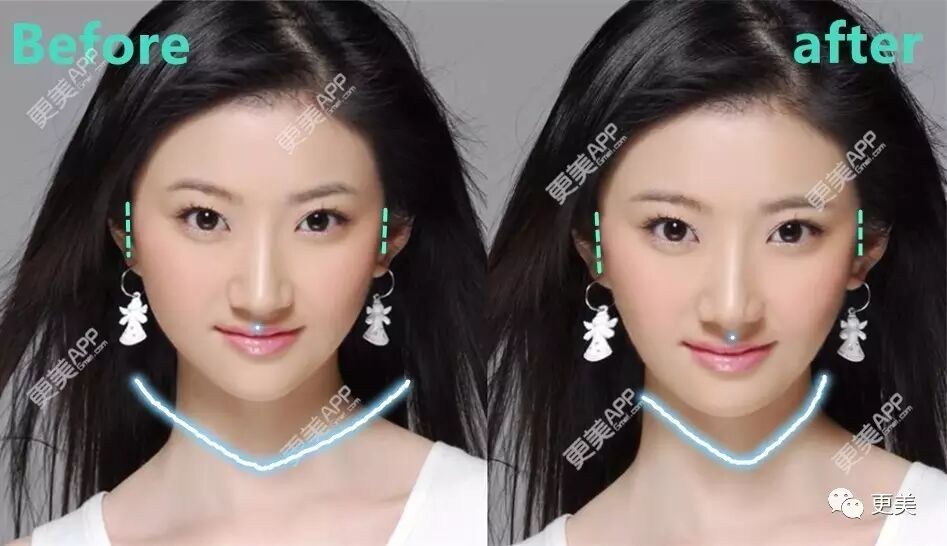 所长帮她P了一下,缩窄颧骨、鼻子缩短、人中拉长、缩短下巴,是不是看上去舒服多了?