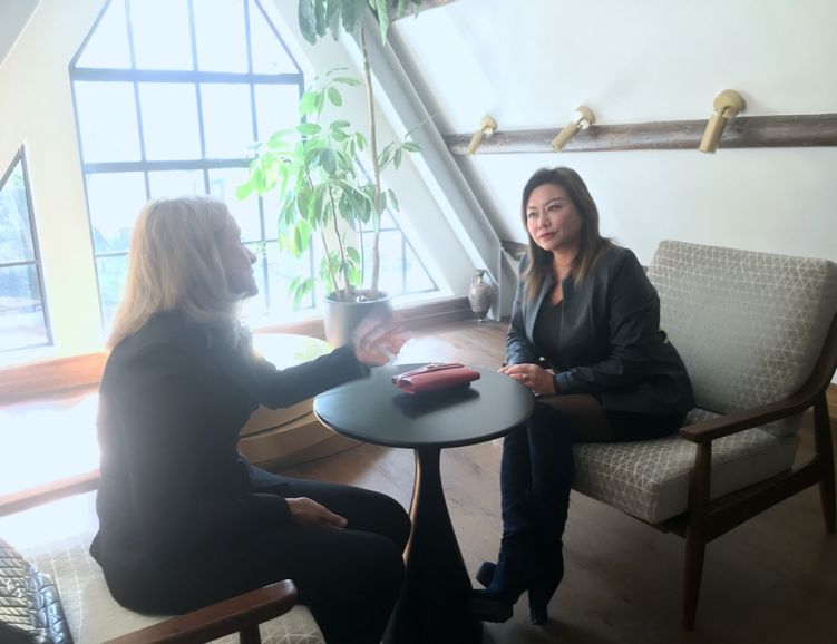 Mrs. Kontomichalou (President of Hellas Group) with Emilie Marinova (spouse of the Greek Consul General in Shanghai) in Sophia Room before the opening ceremony.