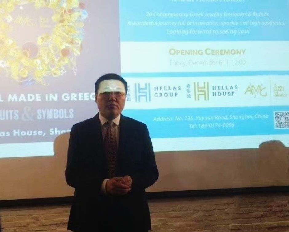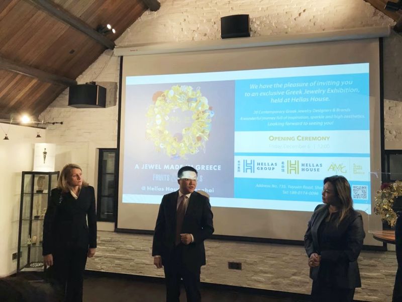 The President of Hellas Group, Sophia Kontomichalou delivered a welcome speech on behalf of Hellas Group during which she first welcomed the distinguished guests, Vice Mayor Meng and the spouse of the Consul General of Greece in Shanghai, Mrs. Emilie Marinova and thanked all friends and attendees for being present on a work day beside their busy schedules and added, “You made it and you all made my day!” Later she continued, “A Jewel Made In Greece is under the auspices of the Greek Ministry of Culture, the Ministry of Development and Enterprise Greece. Founded in 2013, its mission as a creative platform is to collect all the talented and passionate contemporary Greek jewelry designers in order to make the most beautiful and meaningful Greek jewelry. In the past 6 years they have made outstanding achievements and have had very positive influence for the Greek jewelry overall. The founder of AJMIG, Mary Samoli is a very talented Greek jewelry designer and she takes the leadership to promote the image of Greek jewelry. She followed the footprints of the Greek Prime Minister and the Greek delegation to participate in the 2nd China International Import Expo (CIIE) and the feedback was very positive. Today we have AJMIG in Hellas House which means that the jewelry have found a new home here in China; a home called Hellas House.”