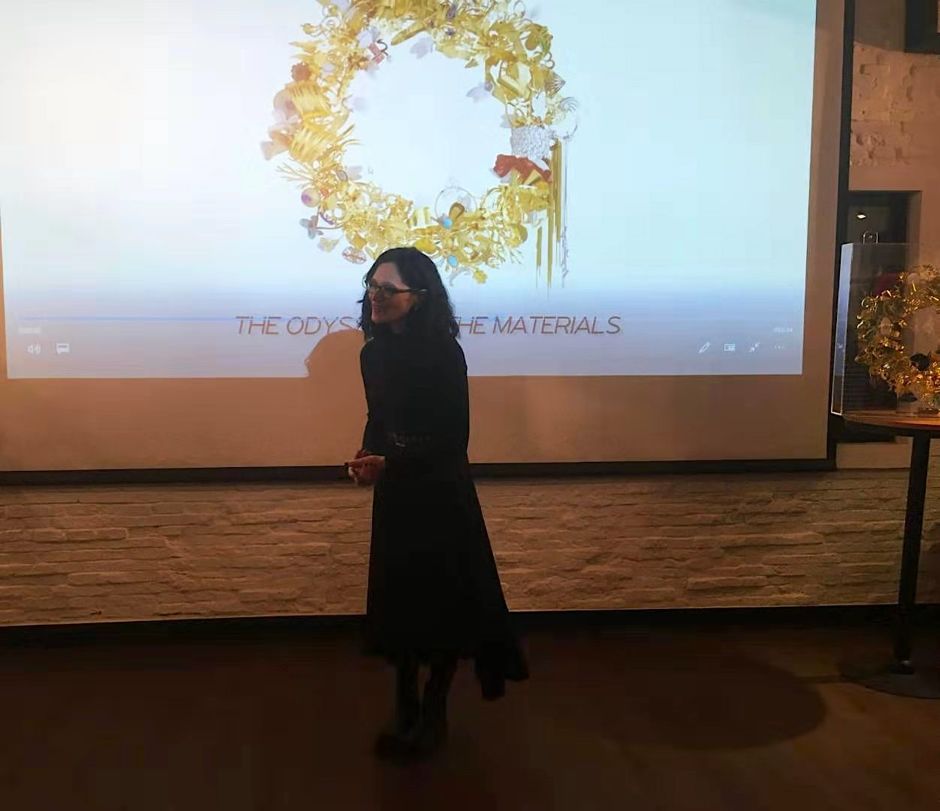 Dia Balioukou (Hellas House’s Head of Culture & Education) during the presentation of the film “The Odyssey of Materials”.