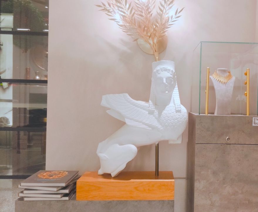 The History Hall of Hellas House adorned with one of the jewelry creations.