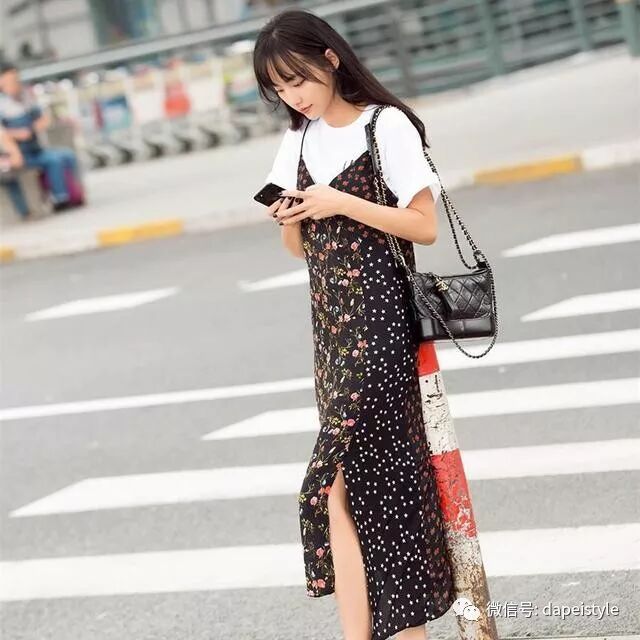 碎花元素相信是很多女生夏天都会选择的图案,因为它减龄又少女。内搭基础款T恤,完美的中和了碎花带给人的甜腻感,加分。