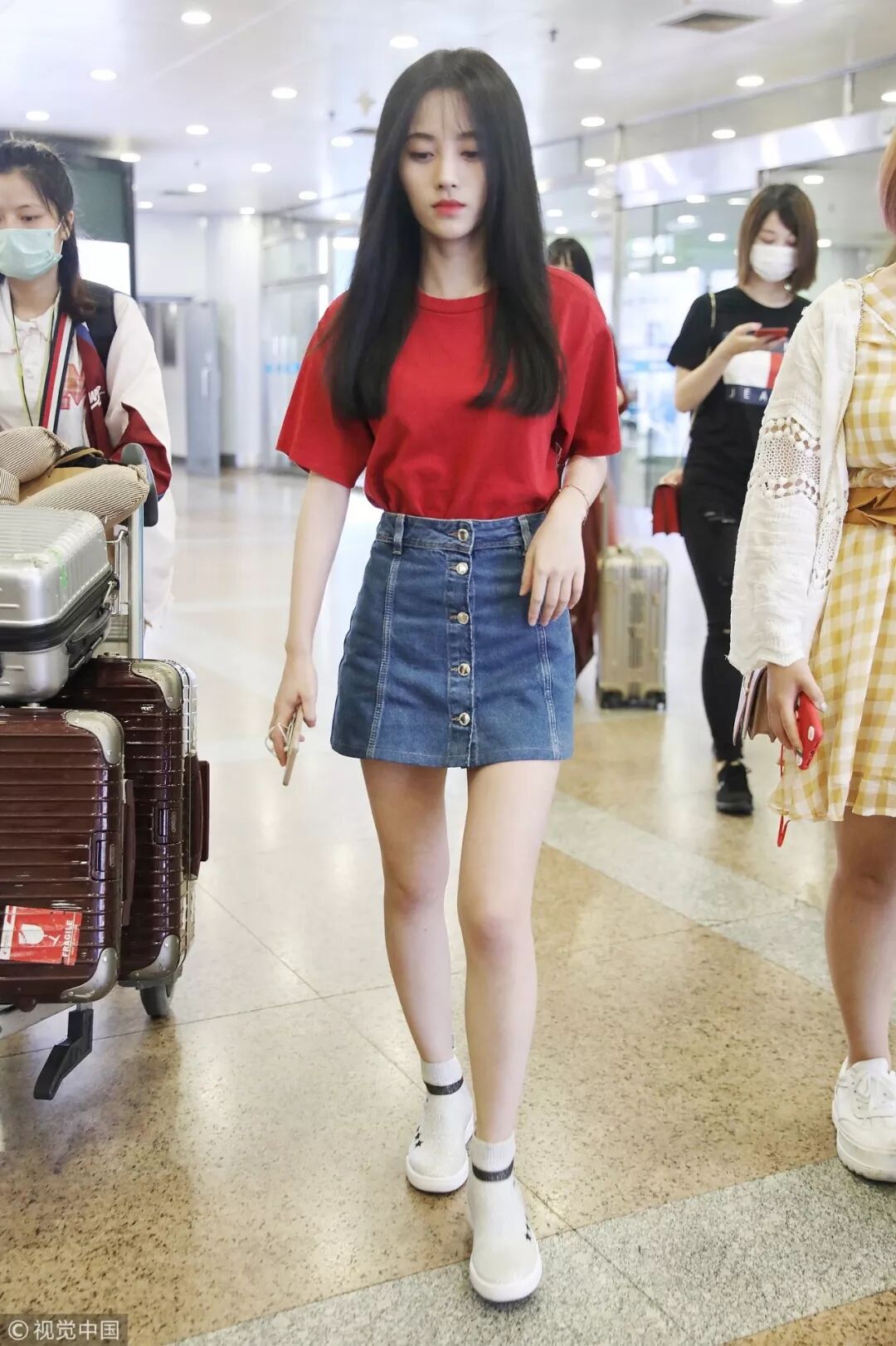 ▲红色的短袖搭配高腰牛仔短裙也是同样的道理。简单的t与牛仔裙的搭配休闲舒适,十分日常,小仙女们平时逛街上学都是不错的选择~