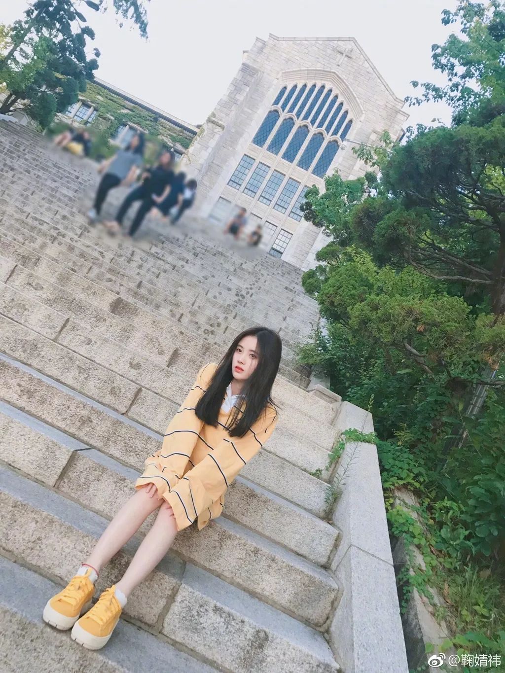 ▲除了增高之外,鞠婧祎的穿衣还十分减龄。黄色的格纹吊带连衣裙活力清新,搭配上白色的运动鞋与同款黄色发卡减龄效果满分。