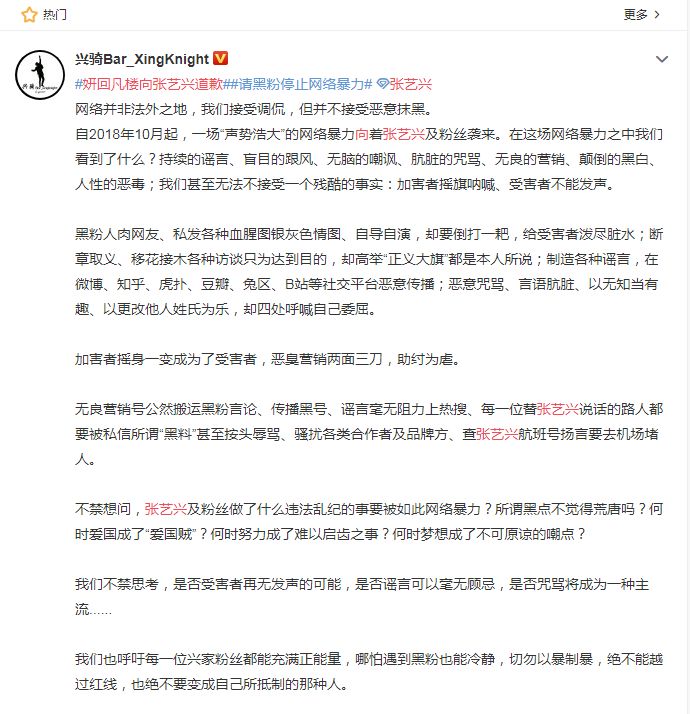 对此张艺兴的粉丝们表示辛辛苦苦反黑了三个月,不接受妍回凡楼的道歉,希望看到她受到法律的制裁。