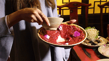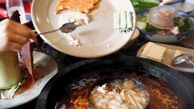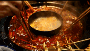 将一大把肉串在里面烫涮,肉香混合着红油的香味在空气蔓延,口水已经控制不住了...