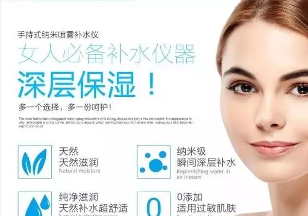 1、安全方便:里面只需添加矿泉水,不必担心含激素或化学成分;而且补水仪喷出的是冷雾,能够镇定舒缓肌肤,非常适合敏感性肌肤使用。