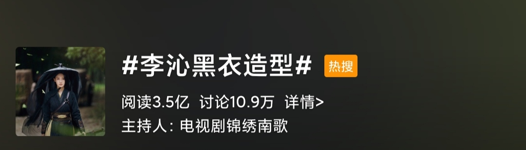 惊艳的黑衣look,使得剧集刚开播便喜提热搜。