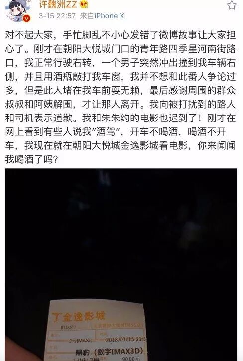 许魏洲发了一个微博故事,里面的内容却是被一个老大爷碰瓷。