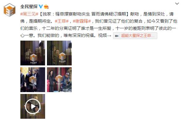 9月份穿出两人复合的消息,并爆料谢霆锋在王菲家住了5天,还拍到接吻照片。