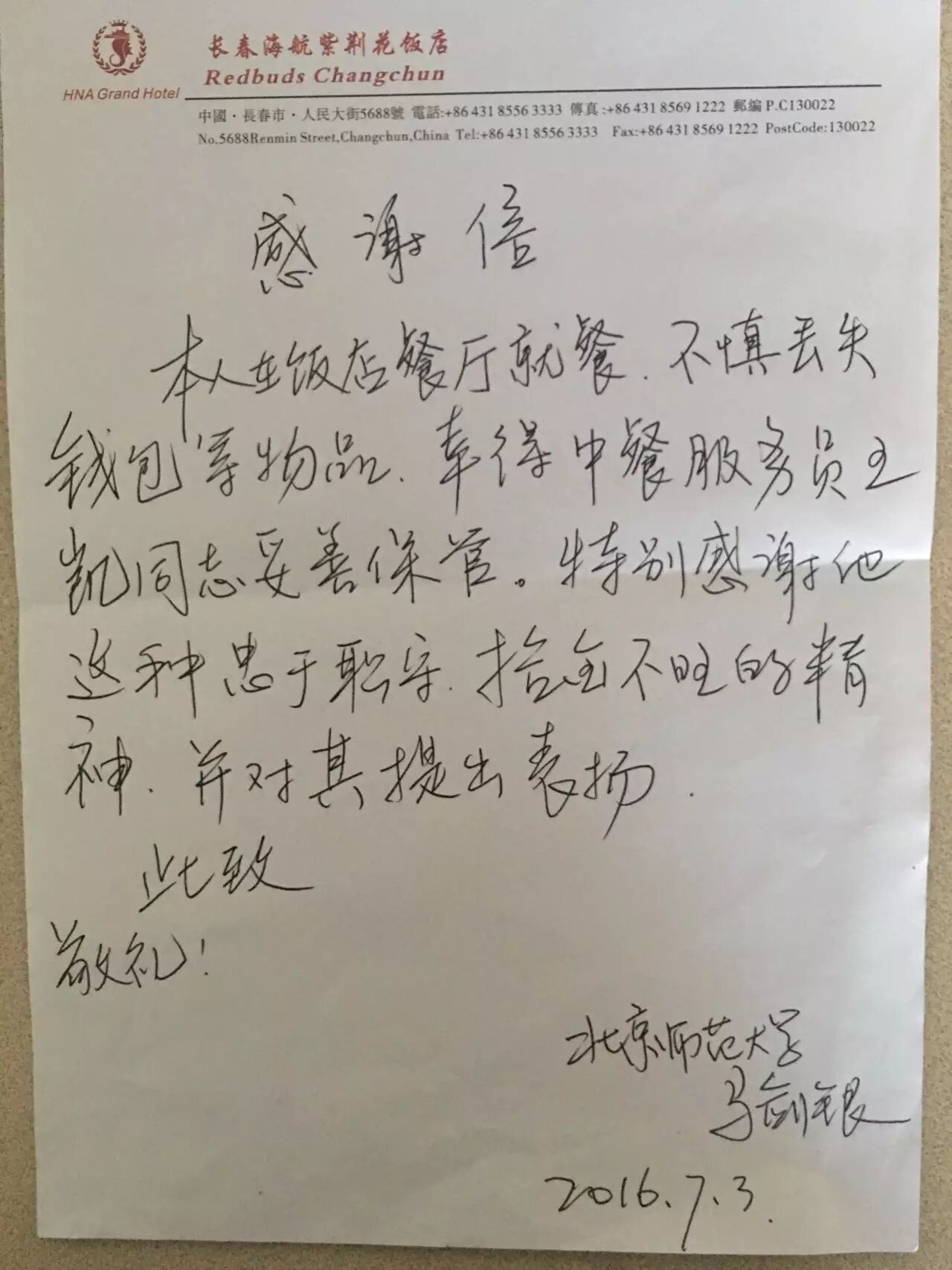 让我们酒店全体员工一如既往地发扬拾金不昧的精神!