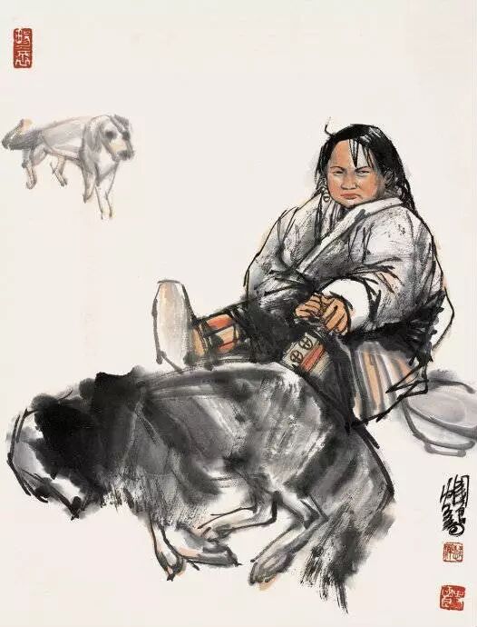 史国良人物画的写生实验具体表现在其作品中墨线与色块的运用。线与面是速写与素描的要素,也是在二维平面展现三维立体的绘画要素。史国良也是在这种意义上运用墨线与色块进行造型的,尤其是在人物的头部特征上表现的更为突出。在其中他运用了明与暗、光与影的变化,使头部的结构特征和立体效果更加明显,在一定程度上也具有了油画的质感。
