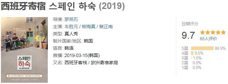 tvN全新综艺节目《西班牙寄宿》昨晚上线,今天评分已达到了9.7分。