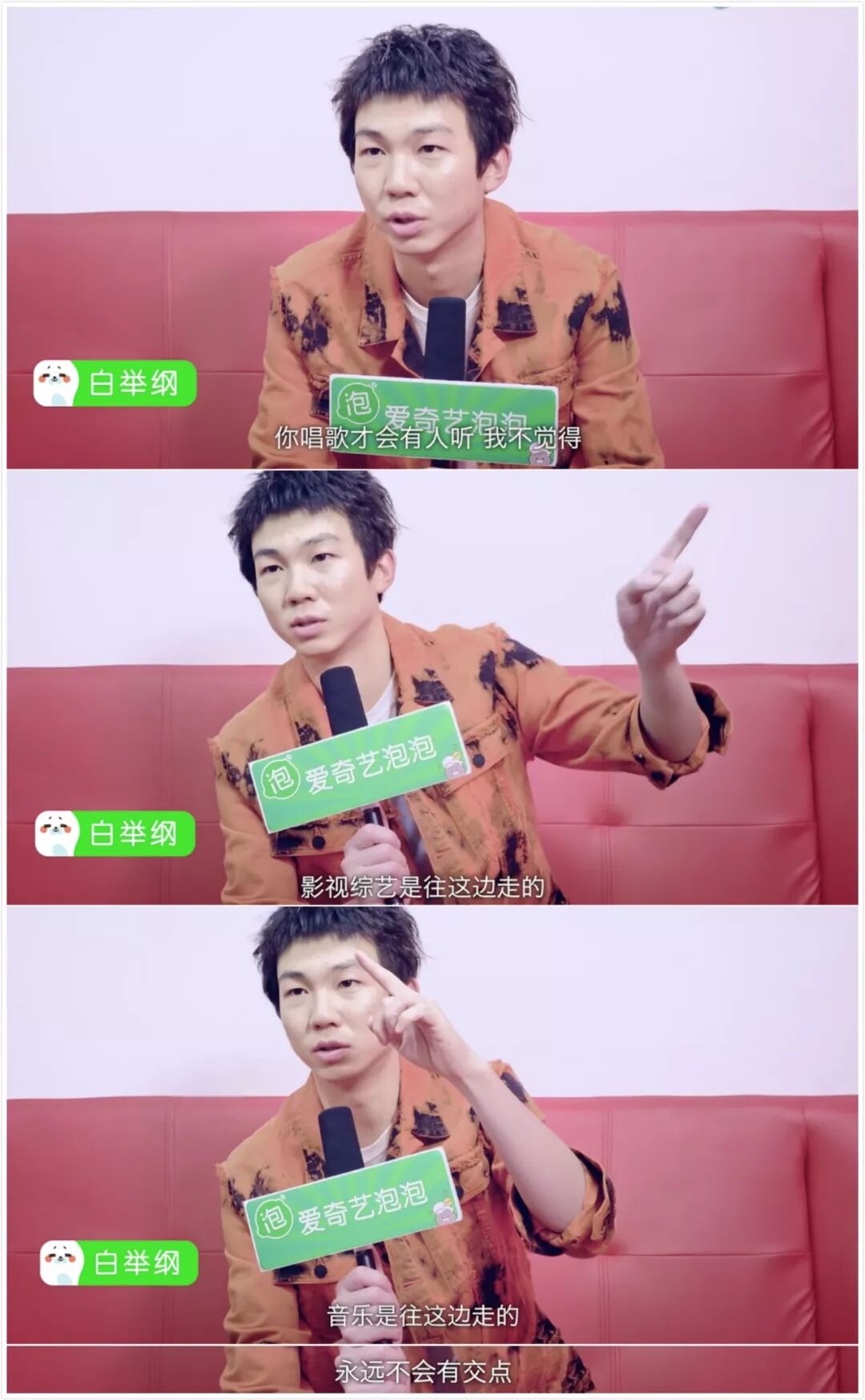 大多数人听到他这番话会揣测背后是懊悔,我也一样,最近白举纲接受的采访看下来,媒体们都是这个方向——你为什么要上那么多节目?你抵触音乐以外的通告吗?你怎么看这两者之间的矛盾?