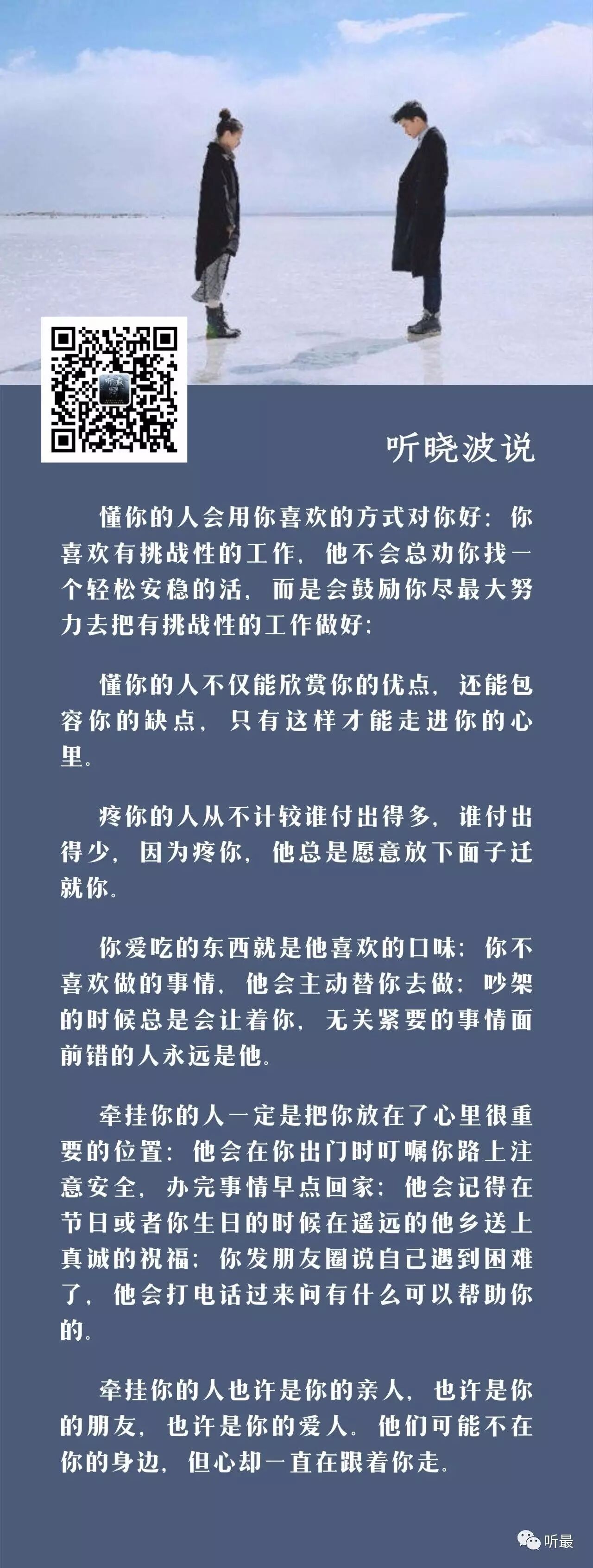 【听·最好听】要看清楚!什么样的人才值得你对Ta好 听最 内地男星 2017-08-05 21:47:15 474 创作不易,用心坚持,欢迎请BaGua喝几杯爱心咖啡!打赏并支持本文 打赏并删除本文 点击下方音频收听背景音乐李珍雅 - GOOD NIGHT (Piano Trio)王晰 - 亲密爱人主播晓波。狮子座,犬系文艺男。喜好观影,喜好阅读,尤其爱看历史类书籍。以“一切都是意外,只是多些波折”为信条,愿用声音,温暖每一位听众的深夜。有什么想说的话,就写在下面的留言板吧! 创作不易,用心坚持,欢迎请BaGua喝几杯爱心咖啡!打赏并支持本文 打赏并删除本文 感谢您的支持鼓励,我会继续努力的!文章地址:用户邮箱:打赏金额:USDT 请输入数字点击”去打赏“,即可进行打赏支持本文章哦 王晰 About the Author 听最 功能介绍:请先点击下方“关注”即可免费收听。 来听最,听最好听 每晚十点,陪你入睡。 Related Posts 老公与小三的聊天记录揭露男人出轨真相:外面没吃过的屎都是香的 2020-10-14 13:43:44 【听·最好听】要看清楚!什么样的人才值得你对Ta好 2017-08-05 21:47:15 发表评论