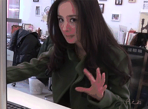 教官让全部人坐下后她用双手掩面,但是能看出来是笑着的。有点不好意思,又有点调皮的感觉。