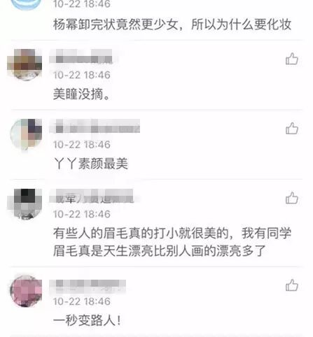有说卸妆秒变路人,有表白丫丫和杨幂的,有说差距不大的。