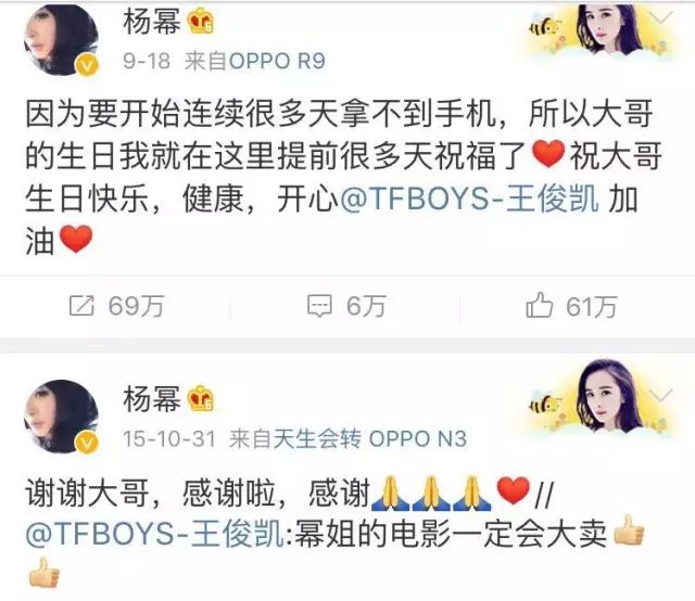 29岁的杨幂一直管99年生的王俊凯叫大哥,而王俊凯也毫不避讳地说杨幂就是自己心中的女神。大幂幂的交友范围真是跨越了80、90、甚至00后三个年代啊……