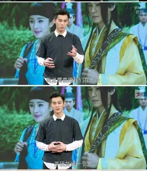 不像其他女明星可能只是在听,但是眼神望着地下或者其他地方,杨幂一直会看着对方。