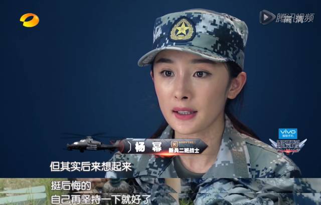 结果教官让全部人站起来,说不要随便给教官起外号。杨幂小声说了句:“完了完了,我的错。”然后站起来时只有她是认真低着头的。