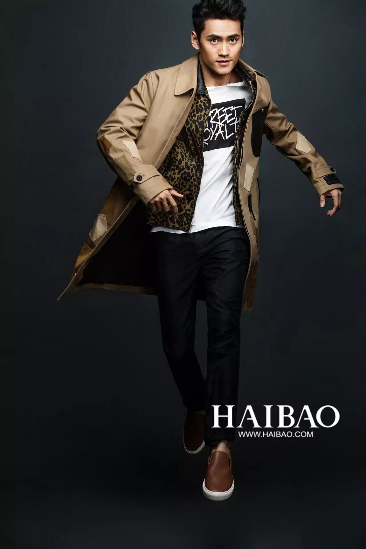 如果你以为袁弘能老老实实的当一回绅士,那你就错啦!内搭豹纹夹克与球鞋透着一股少年的青春活力,成功打造了少年绅士的形象,让成熟与青春达到完美的平衡。