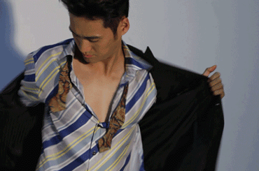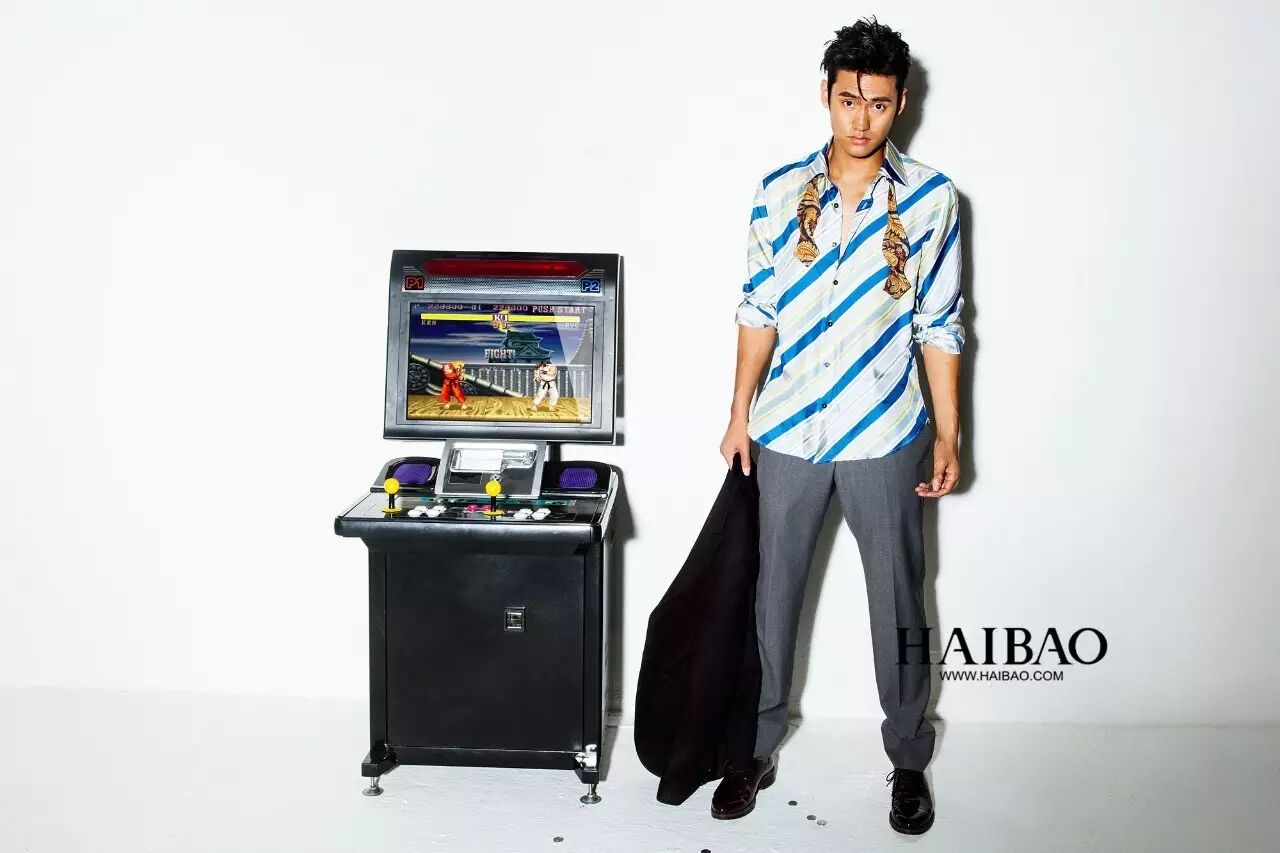 一件条纹衬衫搭配印花领结,率性的穿搭,随性中散发着桀骜的男性魅力,体验了一把不一样的西装革履。袁弘告诉海豹君,他小时候玩的是《街霸》,聊着聊着,就直接脱了外套玩起来。