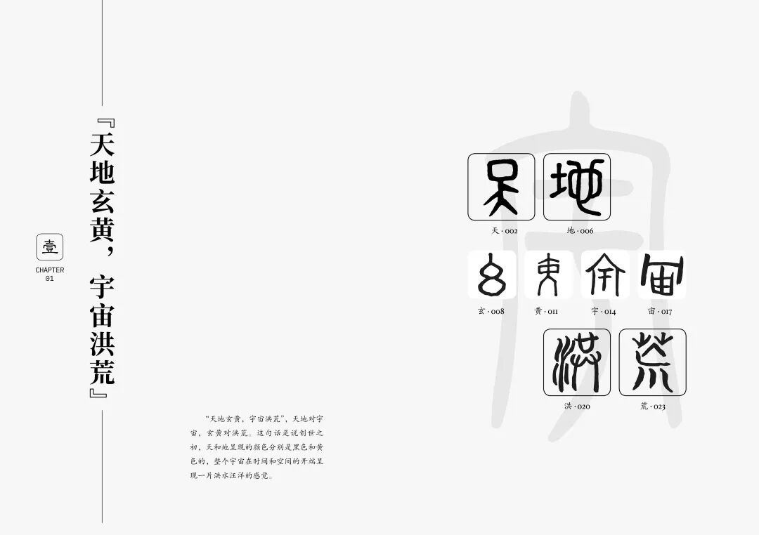 所以,要回到汉字的源头,从字根意义上,重新梳理、解释、印证汉字的流变。把字中包含的学问、智慧说清楚。与市面上其他解字书的串讲形式不同,书中按照《千字文》的顺序,从“天地玄黄,宇宙洪荒”开始,逐字讲解。