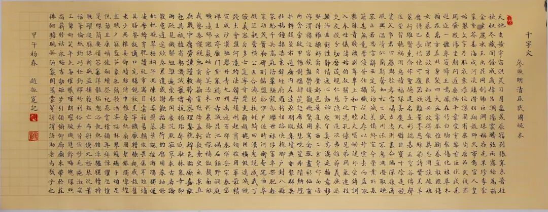 《千字文》全文共二百五十句,一千个汉字,单字不重复,四字可成句,两组一韵,前后贯通,千字可成文,对仗工整,条理清晰,读诵起来朗朗上口,易读易记,是一部浓缩的识字百科。