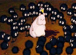 《龙猫》中小梅和小月发现了古宅精灵“煤煤虫”,它们胆怯怕人,喜欢藏在古宅的墙缝中安家。它在日本的民俗传说中也被记为“烟尘渡”。这种与人类相伴的“小妖怪”似乎只有孩子才能看到。龙猫则是宫崎骏发明的一种妖怪,它是森林的真正主人。