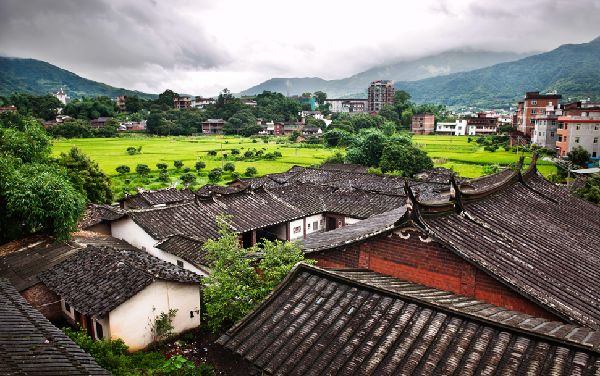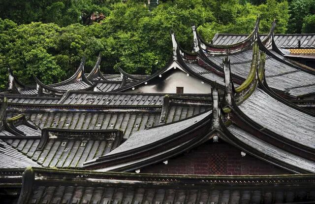 古厝隐藏在郁郁葱葱的古树林里,显露出一角优美的弧度,引人无限遐思。