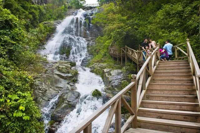 3、北溪文苑旅游风景区是泉州首家生态旅游自然景区,内有三大壮观瀑布:九叠泉瀑布、石门溪瀑布、双溪瀑布,其形如仙人解佩,如白练垂天,亦似玉龙饮涧。