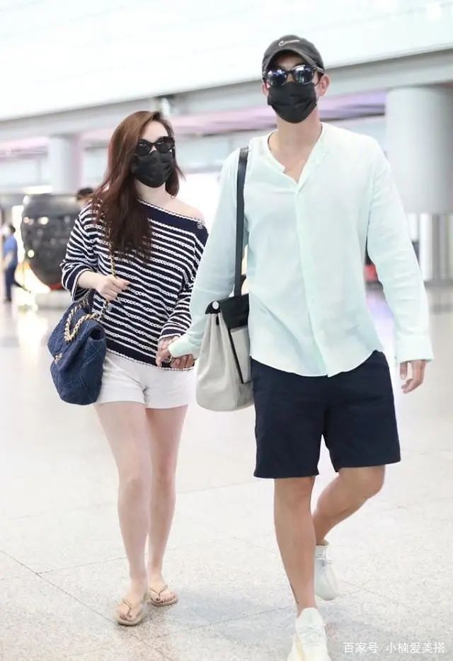 霍思燕出门时不得不牵着丈夫的手,穿着热裤,半露着肩膀,丈夫却“没看见”。黑白构成的条纹上衣简约,为了避免让穿衣搭配过于普通,条纹设计中还采用了麻花设计,让条纹更丰富,更有设计感。