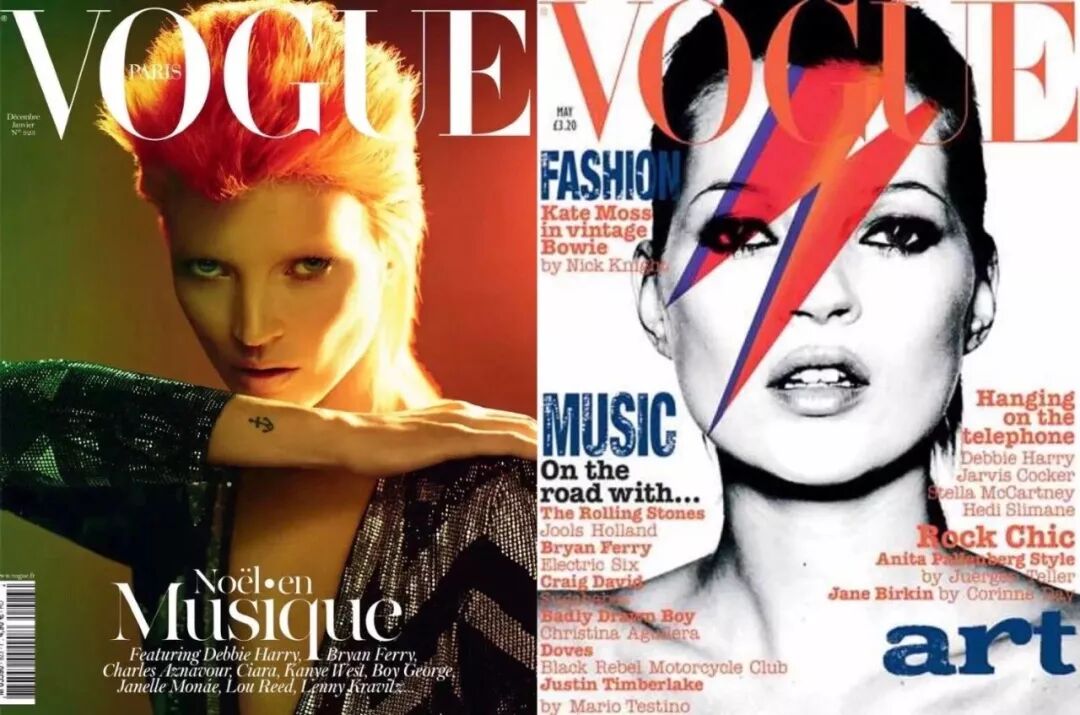 著名超模Kate Moss,也以David的标志性造型两度登上《VOGUE》封面。