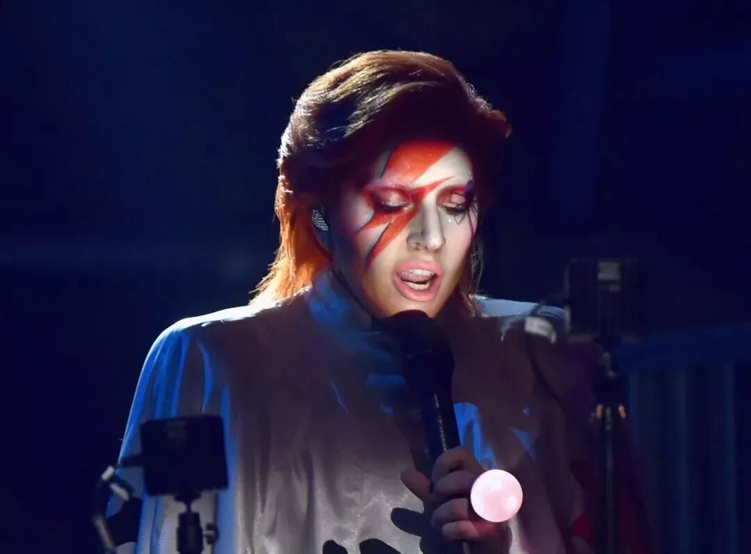 Lady Gaga曾三次致敬David Bowie,一次是2008年的《Poker Face》,她在脸上画了同款闪电妆;