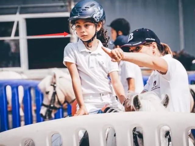 从另一张照片上可以很清楚的看见霓娜的样子,虽然还是大家熟悉的卷发,但是五官却与小时候有着很大的变化,五官也精致了不少,脸上的轮廓也随着长大变得更加的清晰,骑在白马上有种岁月静好的感觉,想必霓娜也是一个性格温柔的女生。