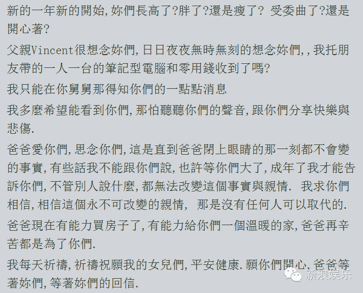 可毕竟血浓于水,随着两个女儿慢慢长大,前妻Fendi的态度也变得不是那么的强硬。