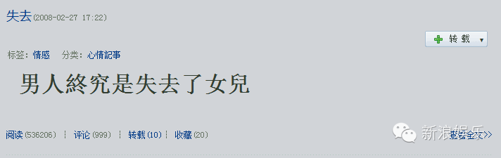 当时焦恩俊在博客上写下了这句话:男人,终究是失去了女儿。