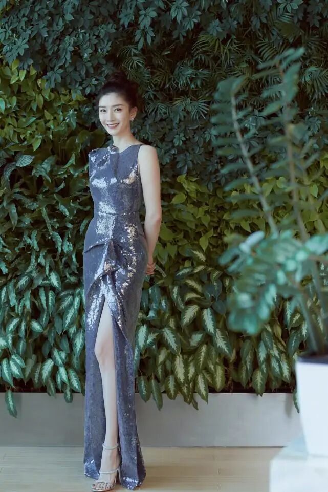 这套look江江疏影完美的身材比例展现的淋漓尽致,她选择的是一条银色blingbling的亮片裙,紧身款式的裙装将她的凹凸有致的身材勾勒出来。银色亮片面料让江疏影仿佛像美人鱼一样。开叉的设计更是将她的一双一双美腿展现出来,鞋子搭配的是一双银白色的高跟鞋,修饰了美腿,这一天江疏影依旧选择的是高马尾造型,将精美的五官比例露出来,妆容方面是比较淡雅的妆面风格,整个人精气神十足,美得太高调。