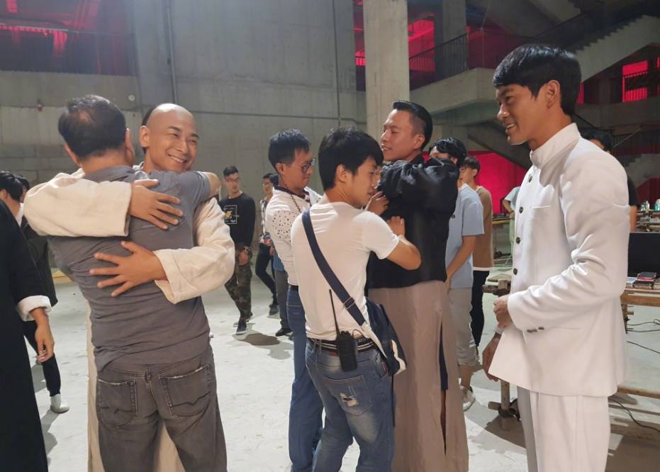 经过在《功夫联盟》剧组几个月的相处,大家的感情越发浓厚。陈国坤老师是在排队等待拥抱告别吗~![]()
