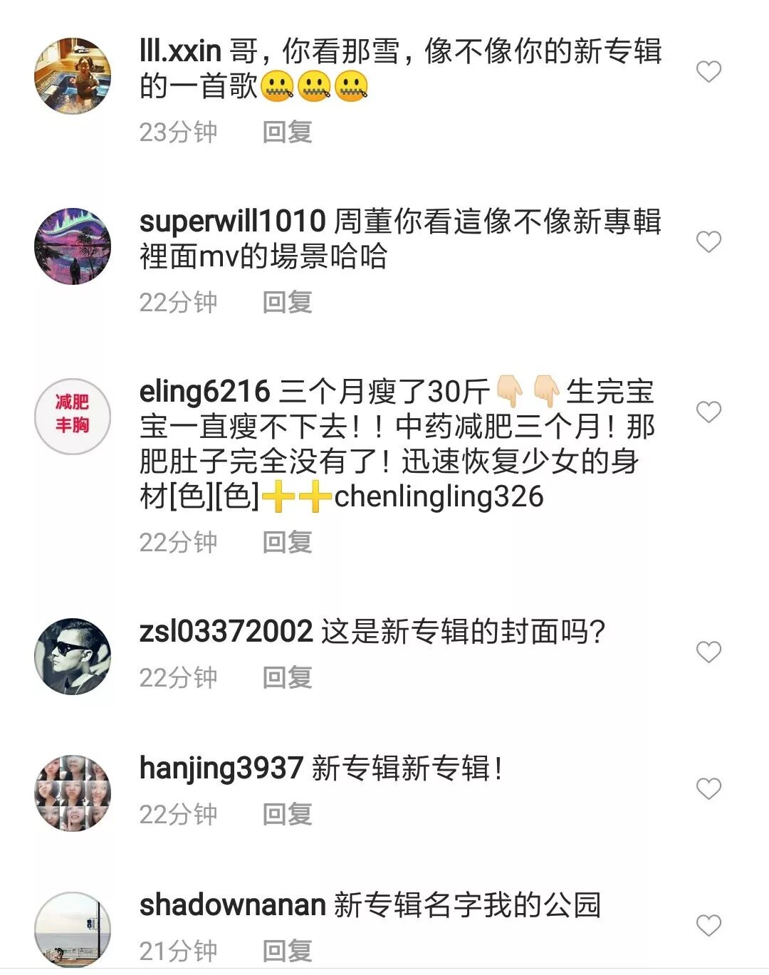 虽然看着周杰伦秀恩爱,评论却出现了另外的画风,简直是齐刷刷地催新歌。